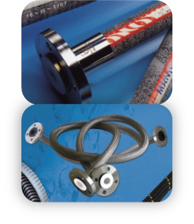2°/ Version revêtue PTFE : le collet est fixé à l'extérieur du flexible pour permettre d'y rabattre le PTFE (Applications chimie principalement)