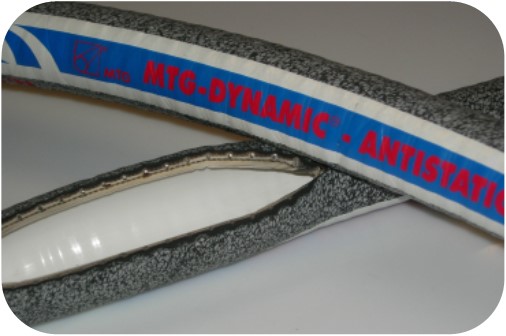 Son revêtement extérieur marbré anti-frottements et antistatique résiste très bien aux projections de matières agressives et résout plusieurs problématiques : frottements entre tuyaux sur des machines de conditionnement, frottement des tuyaux contre le bâti de la machine, évitant ainsi toute usure du tuyau par l'extérieur, et/ou dépôt de caoutchouc sur les produits qui passent dessous.