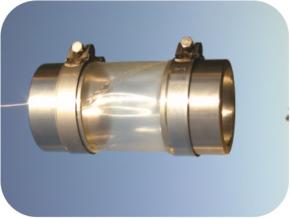 • Viseurs en FEP incassable, réalisés à la longueur souhaitée pour visualiser l'écoulement du produit